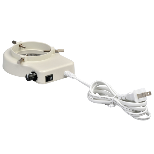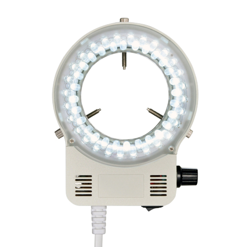 高輝度白色LED(砲弾型LED電球)を56灯搭載しています。推奨作業距離は50mm~150mmで、長い作業距離でもご利用頂けます。輝度が高いため、高倍率での観察においても明るい視野が得られます。