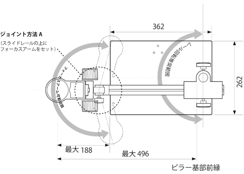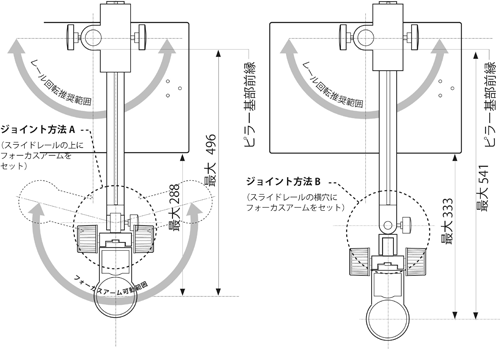 ・ジョイント方法B:フォーカスアームが360°回転します。