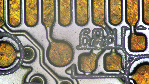 金属表面、電子基板、光沢面上の印字などを観察する際のハレーション(白とび)を大幅に抑えることができます。ホコリなどの異物や傷の検出など、通常の照明では難しい試料の検査や写真撮影が容易になります。
