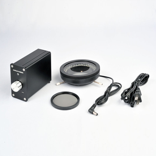 78灯の高輝度白色LEDリングライトに、 2枚の偏光フィルタ(ポラライザ、アナライザ)を装備したモデルです。