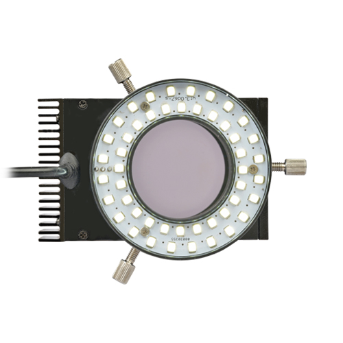 顕微鏡の対物レンズ下端部に装着して使用します。鏡筒外径35mm以上57mm以下のビデオマイクロスコープや実体顕微鏡などに取付可能です。