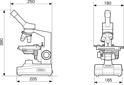 対物レンズ・接眼レンズは工業規格適合品(DIN)。アッベ式のコンデンサ搭載。
