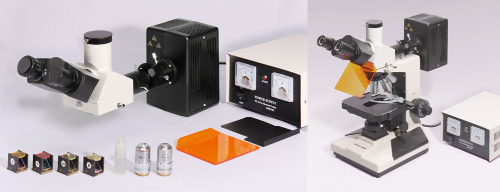 正立型の生物顕微鏡BX-2700TL・生物顕微鏡BX-3500TLに取り付けることで、蛍光観察が可能となる水銀ランプ光源仕様の落射蛍光ユニットです。