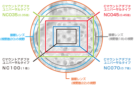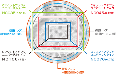 NT500 における各Cマウントアダプタユニバーサルタイプでの撮影範囲