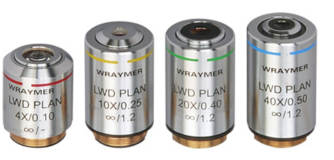 また明視野観察用の対物レンズもオプションで用意しております(4倍、10倍、20倍、40倍)。